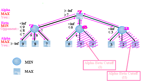 Figure 3. An example on adding alpha-beta pruning to the