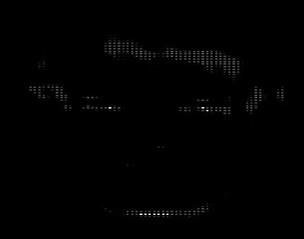 Results After the ANN had trained to a final error of 1e-09, the three images which were used as the basis for the training set were scanned. The scanning involved moving the 20x20 input field of the ANN along the rows and columns of the image, one step at a time. A stepping distance of two was used to reduce the scanning time. The original image and the ANN output are shown below, side-by-side. The output is further modified by increasing the output value to 3 for the pixels with the maximum values. Note that for all three of the images, the center of the eyes are indentified, along with some extraneous areas which contain sharp contrast features. For the image below, one maximum point exists for the eye on the left, several for the eye on the right, and several points in the shadow area below the chin.