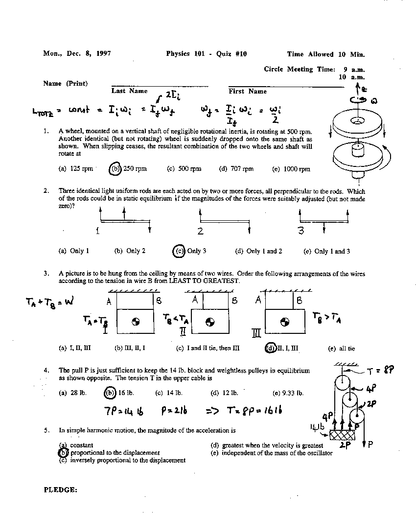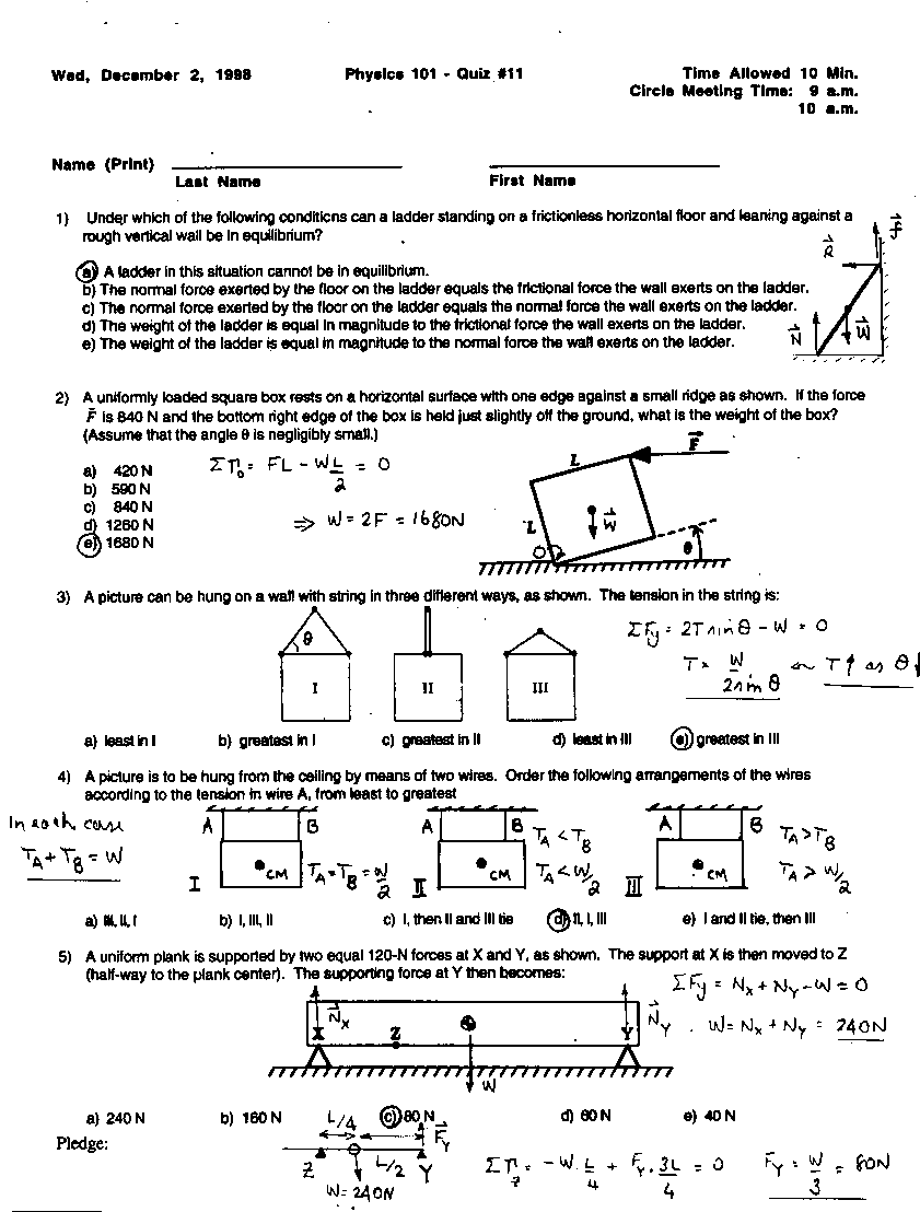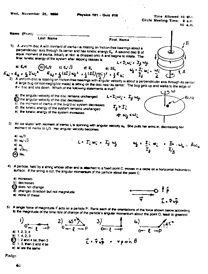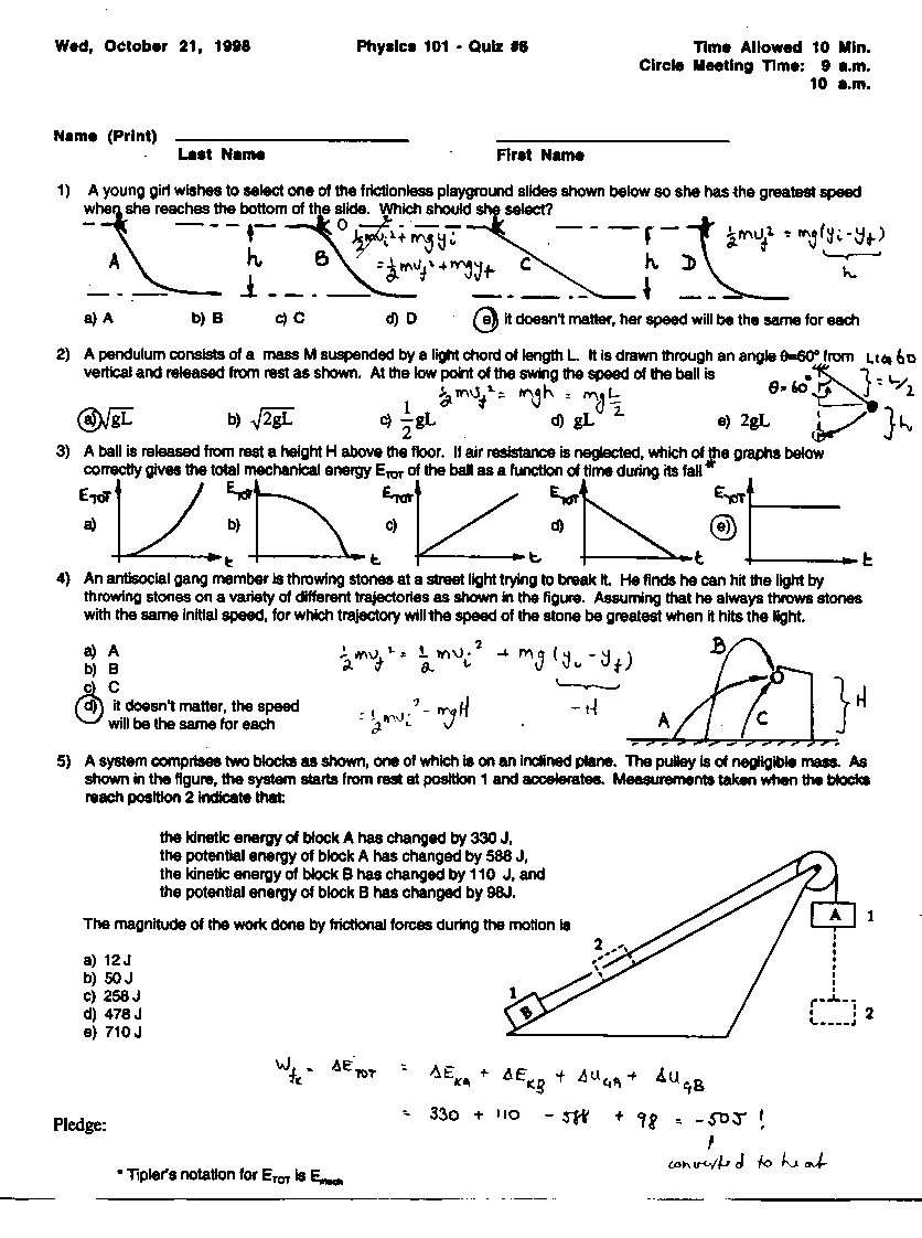 Quizzes, Fall 1998